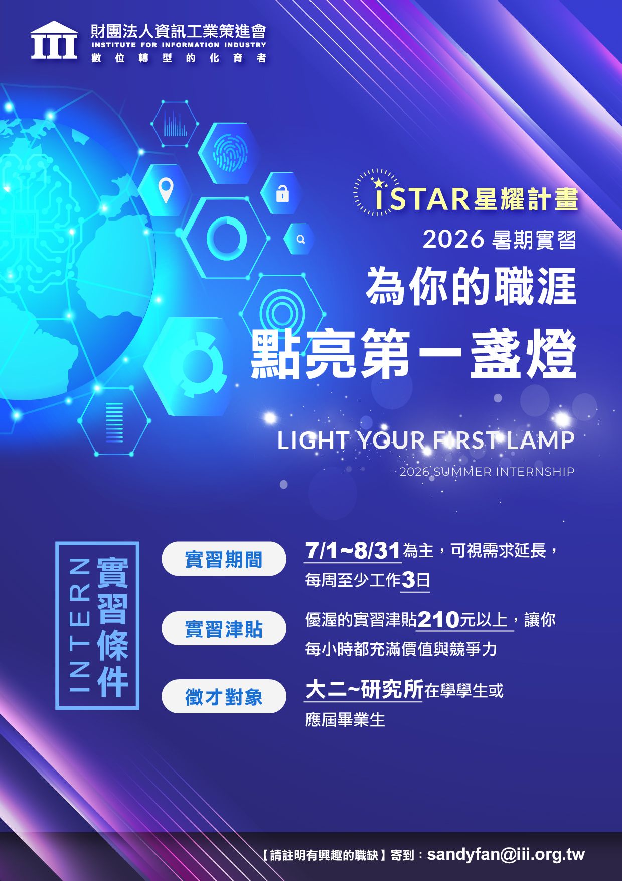 您也可以透過將您的履歷註明想要應徵的職缺email給sandyfan@iii.org.tw!