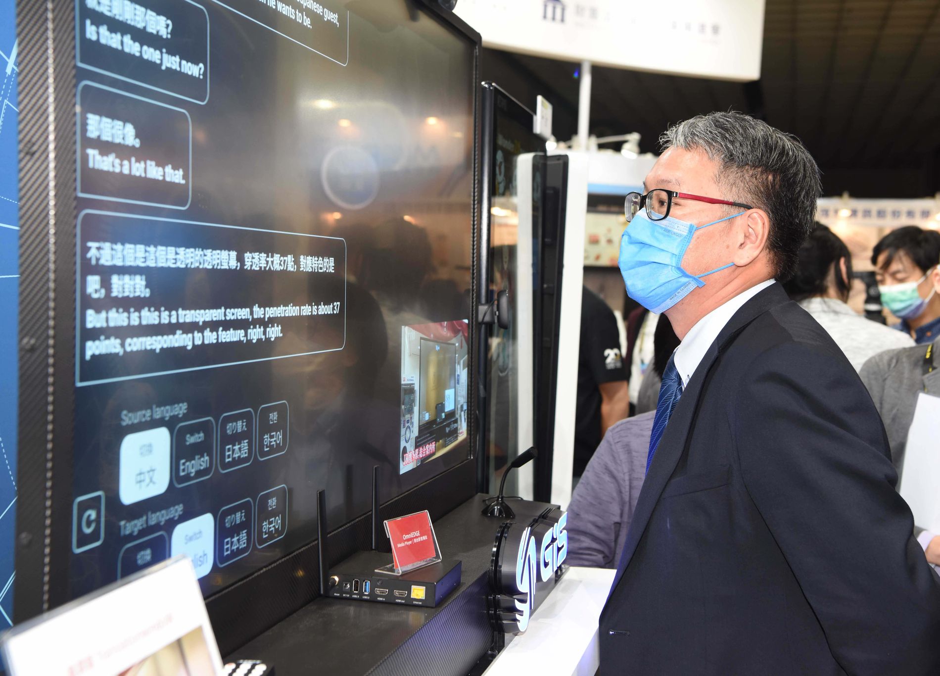 「先進智慧顯示生活館」除了展示智慧餐廳的非接觸式點餐螢幕,也以照護中心為例,打造透明AI翻譯問診櫃台,讓東南亞看護帶著長者看診溝通無礙,在長者行動上也設有加速復健成效的步態分析互動顯示等多項智慧科技;展區內亦設置休憩空間的體感互動導引牆、互動遊戲桌,提供民眾個人化的互動體驗;在移動領域上,現場展示捷運站櫃台的透明顯示、火車及站內的互動行銷顯示器,電子紙智慧候車亭、智慧車載顯示等,以更多元的顯示方式呈現交通與周邊資訊;還有偵測空氣品質的電子紙指標、全貼合觸控白板搭配VR互動、AR眼鏡等多項智慧顯示應用。