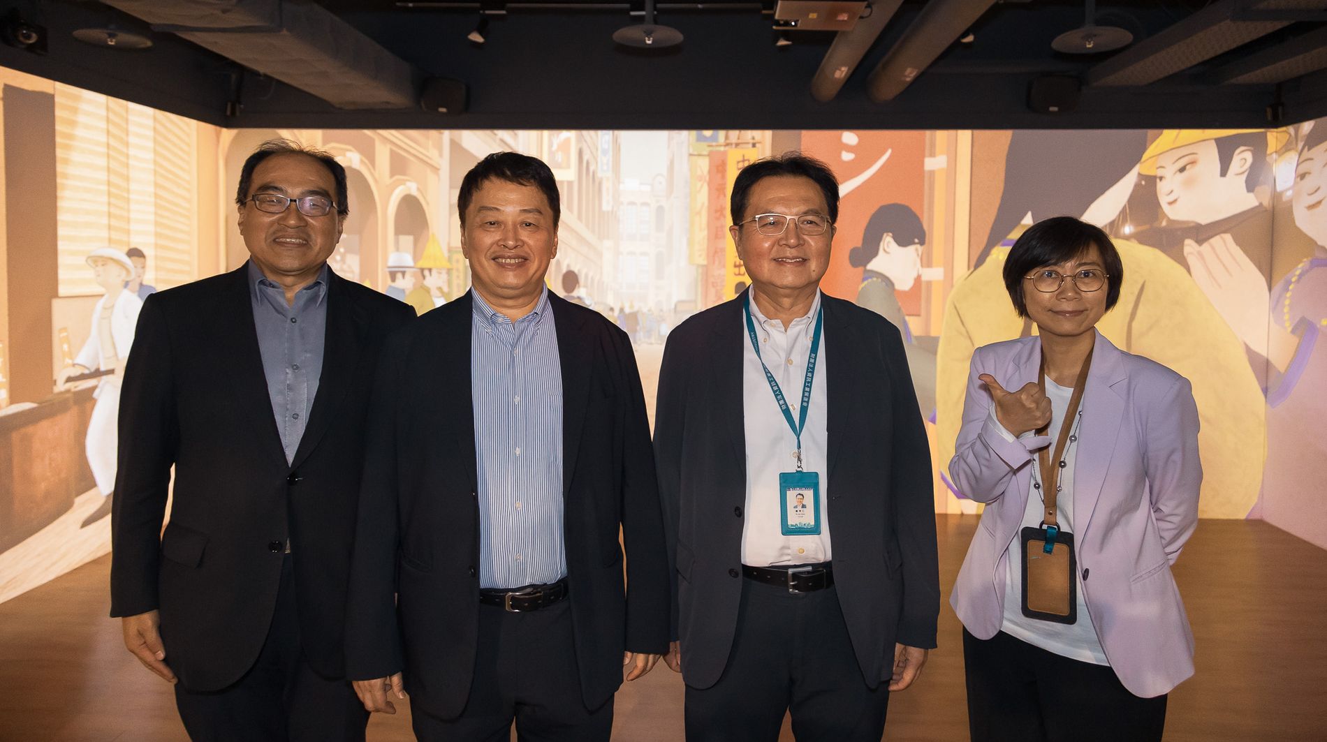 沉浸體驗區:於Living Lab+2樓主展場展出,包括AI語音互動展示、智能送餐機器人、沉浸式虛擬直播攝影棚、Xrt虛實融合導覽系統、肩背式電子紙看板、結合時下最熱門的生成式AI(AICG)企業知識庫Q&A智能客服,同時,也設有AR互動體驗,民眾可在平板或手機上書寫祝福吉祥話之後,上傳至郭雪湖畫作「南街殷賑」裡的旗幟共同展示,虛實整合帶來全新體驗。