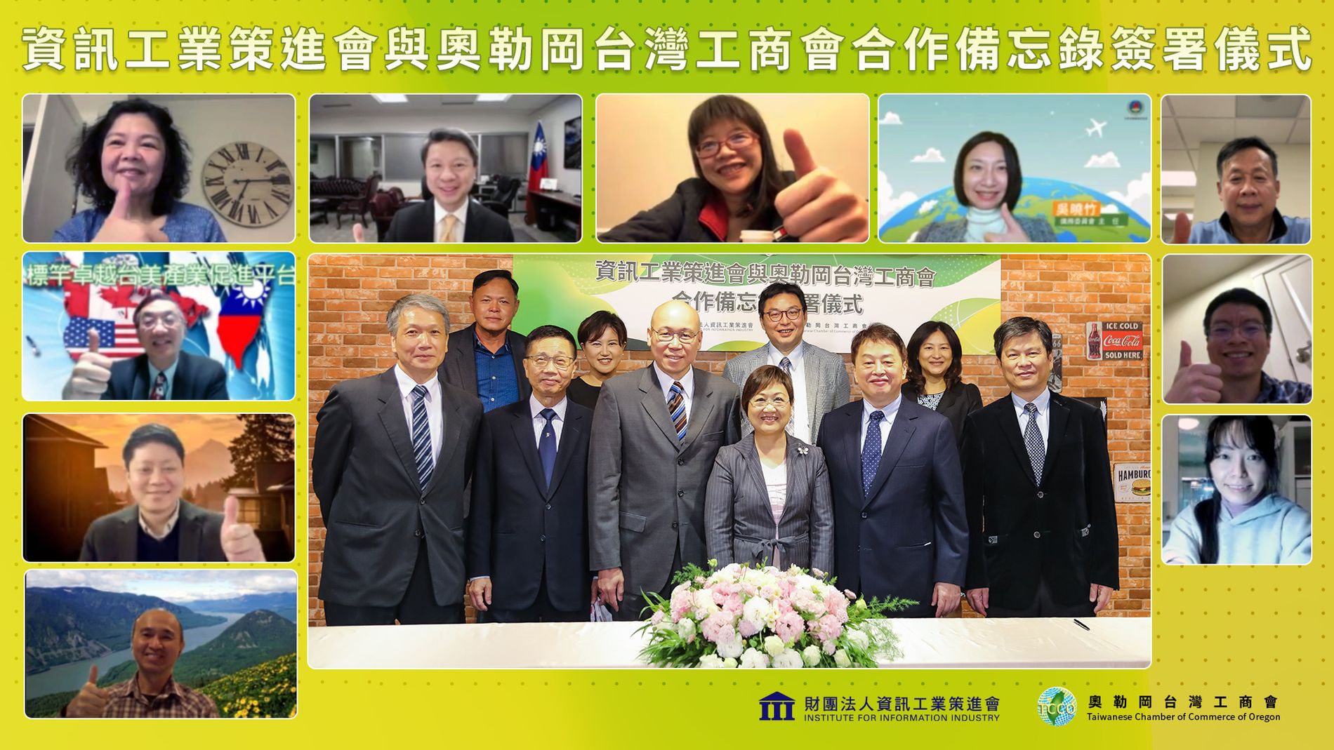 資策會執行長卓政宏表示,疫情加速全球數位轉型,很榮幸資策會能運用自身數位科技能量與奧勒岡台灣工商會展開數位趨勢、技術應用相關合作,包括數位轉型、資安防禦、國際標準認驗證、5G應用等主題。此外,也可提供僑台商企業相關產業技術合作經驗與案例,藉由海內外商機的合作,以及青年創業的交流與輔導,共同面對環境變革的轉型發展;期許全新的合作模式,日後能擴展至全球僑台商,協助海外僑台商產業數位轉型。