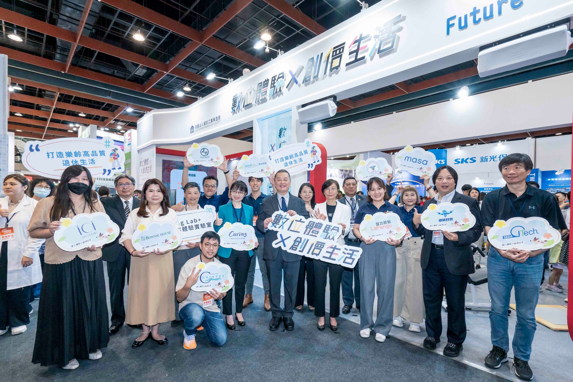 資策會於2024高齡健康產業博覽會中,展出逾10項技術,包含雄感動樂齡健康促進解決方案、WhizToys運動地墊遊戲平台、地板滾球運動互動系統、運動科技健身房、腦力健康訓練、智慧香氛療癒空間、iSAFE照護感知系統、福氣陪伴機器人、療癒科技紓壓按摩椅墊、療癒科技美麗新轉肌等,提供樂齡者全方位的運動照護。「數位體驗X創價生活」主題館不僅是一場展示運用數位化創新技術的盛會,更展現資策會及參展業者間共創的具體成果,共同塑造「未來體驗創新實驗室」的未來產業藍圖。