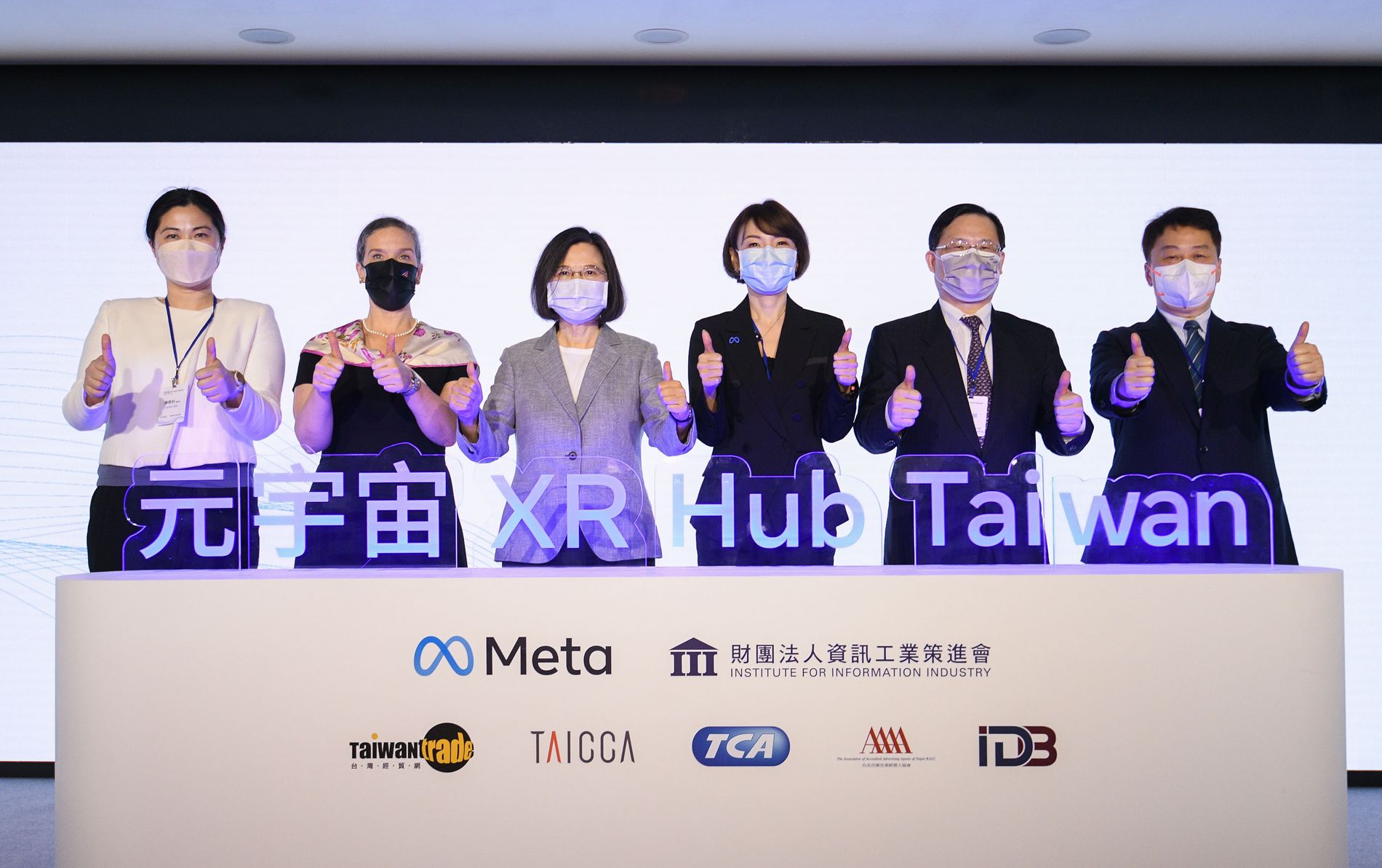 「元宇宙XR Hub Taiwan」由蔡英文總統、經濟部林全能次長、美國在台協會孫曉雅處長、經濟部工業局陳佩利副局長、資策會卓政宏執行長、與Meta 朱怡靜總經理共同啟動,現場包括文化內容策進院丁曉菁董事長、中華民國對外貿易發展協會李惠玲副秘書長、台北市電腦商業同業公會杜全昌總幹事等重要貴賓蒞臨現場,共同見證台灣元宇宙匯流基地的誕生,也以行動支持元宇宙「國家隊」引領未來數位發展,開啟我國邁向元宇宙的重要里程碑。